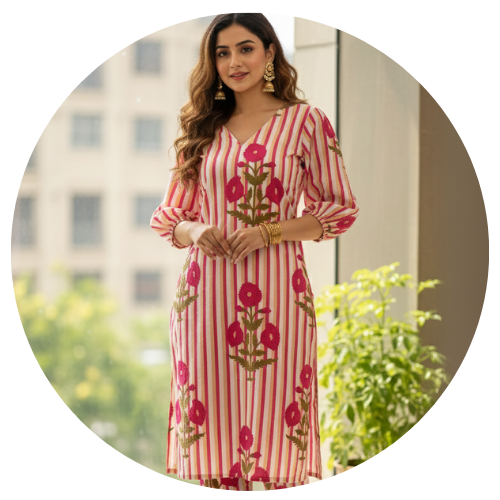 "The Kurti I ordered is super stylish and comfortable. Perfect for both office and daily wear. The stitching and color finishing feel very premium π"