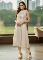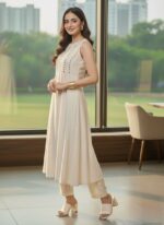 Silhouette: A-line kurta with a slightly flared hem for an elegant fit, paired with straight-cut trousers.
