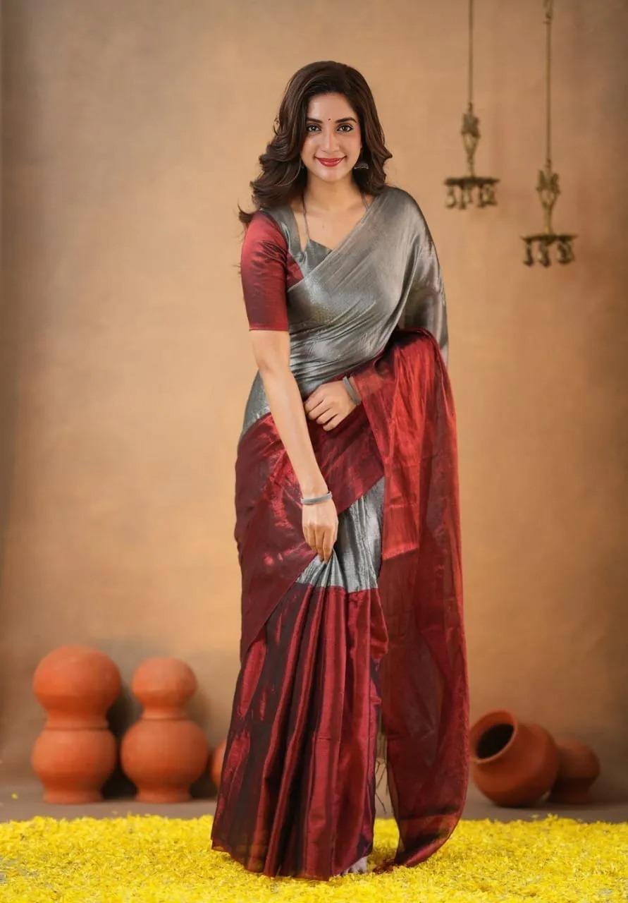 πš‚πš‘πš›πš’πš—πšπšŠπš›- Linen Tissue pallu Saree with running blouse
