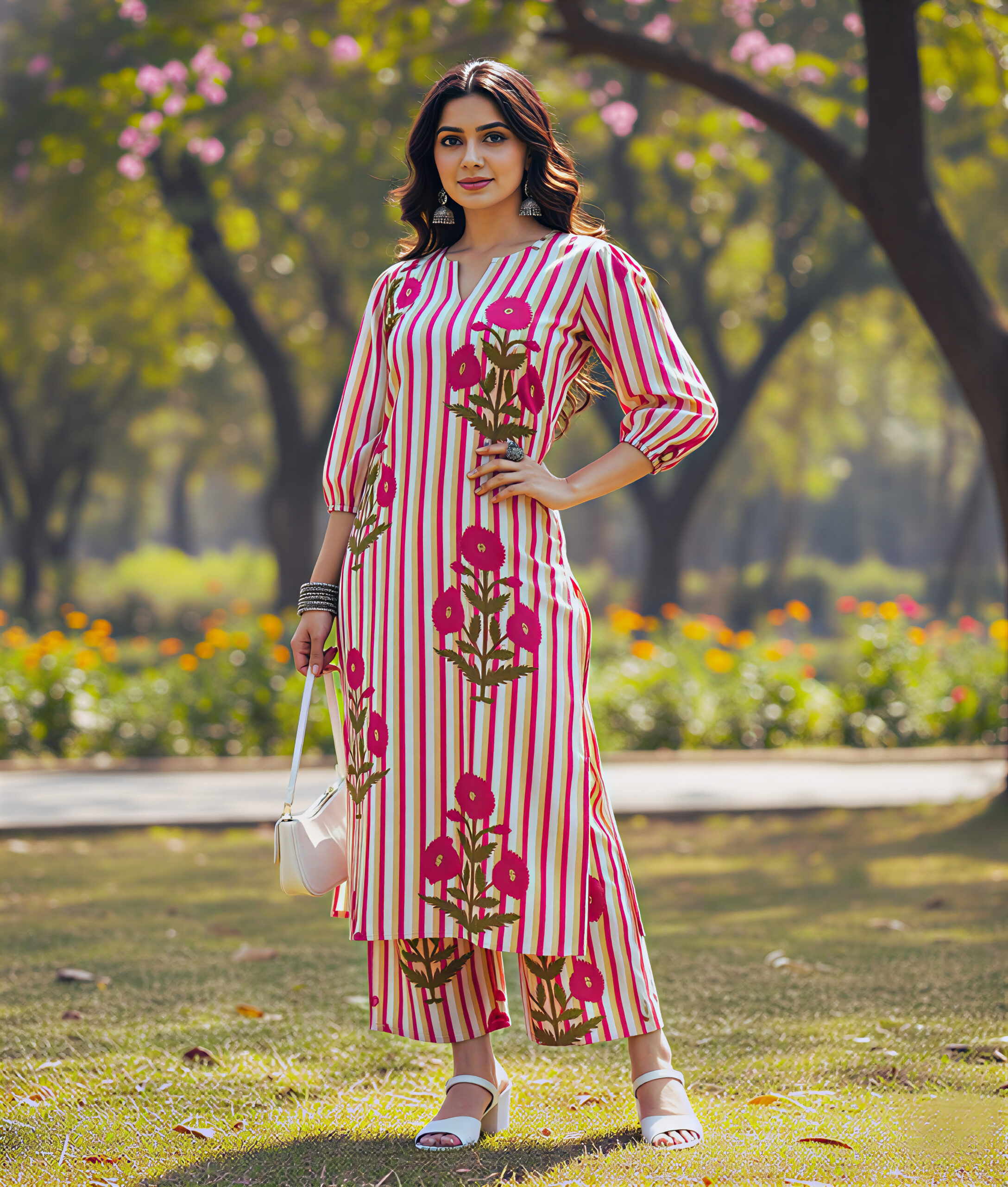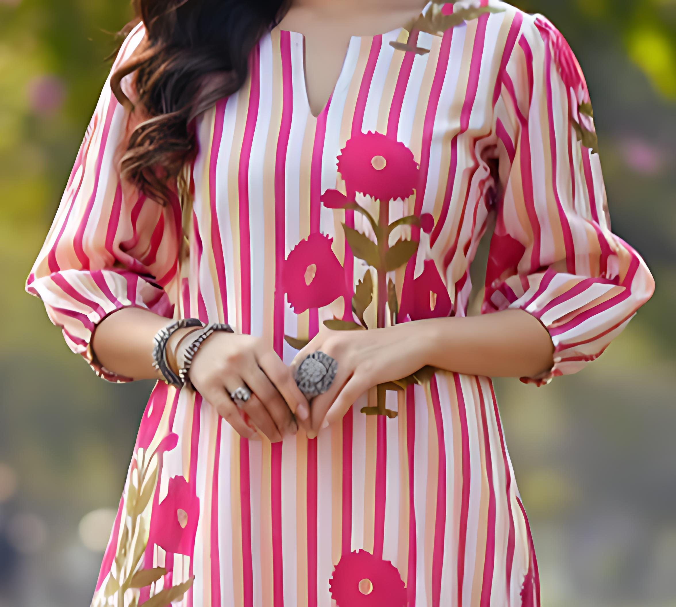 π Stylish Design: Trendy mix of stripes & floral prints for a chic ethnic look.