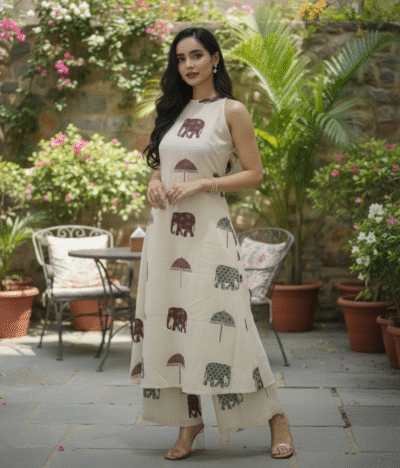 π Complete Set: Straight-cut kurta with comfortable trousers for a coordinated outfit.