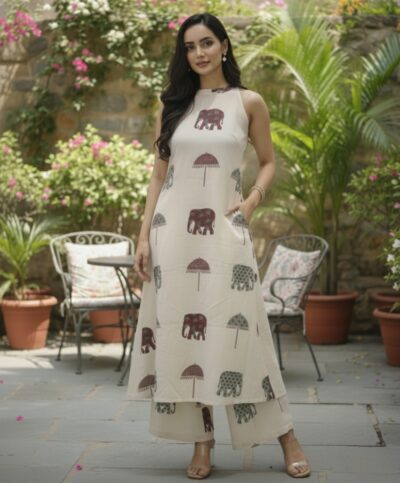 The kurta, crafted from breathable cotton blend, keeps you fresh all day, while the trousers ensure ease of movement.