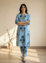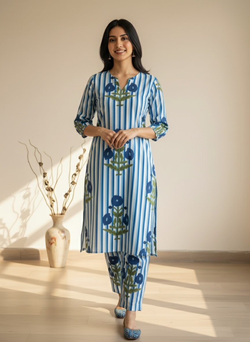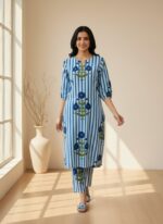 This Cotton Blend Striped & Floral Print Kurta Set is a perfect balance of style & comfort.